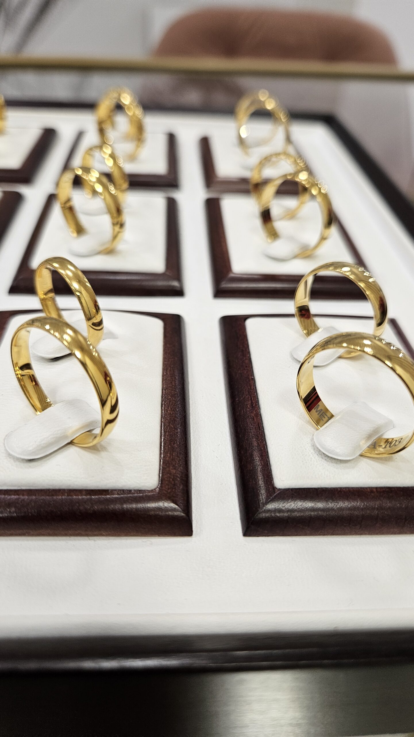 Wszystkie nasze obrączki wykonujemy ze złota próby 585, dbając o każdy milimetr kruszcu. Możecie wybrać jeden z czterech szlachetnych odcieni: