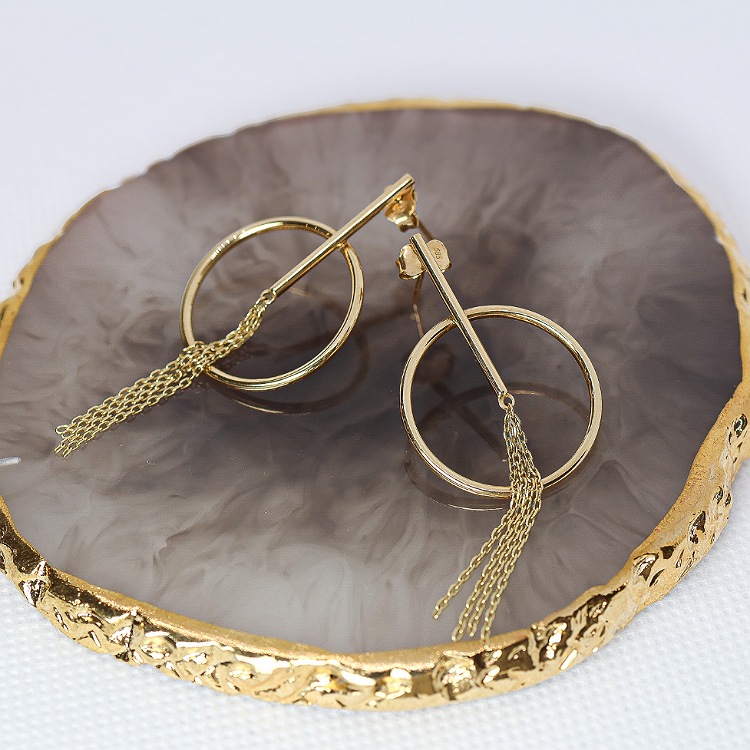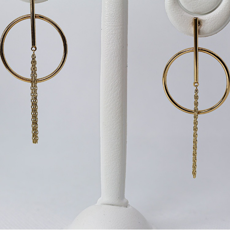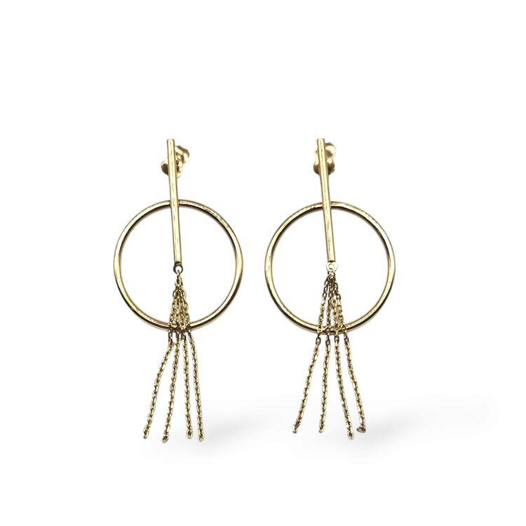 Kolczyki długie koło z łańcuszkami sztyft – złoto próba 585.