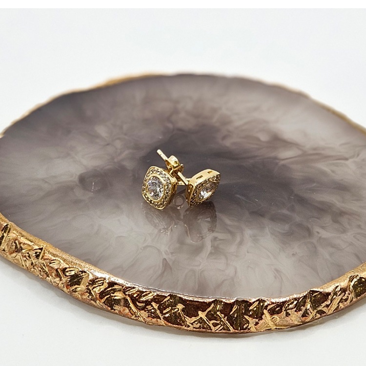 Kolczyki złote - kwadrat cyrkonie - Złoto próba 585