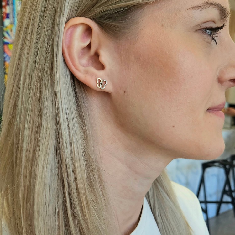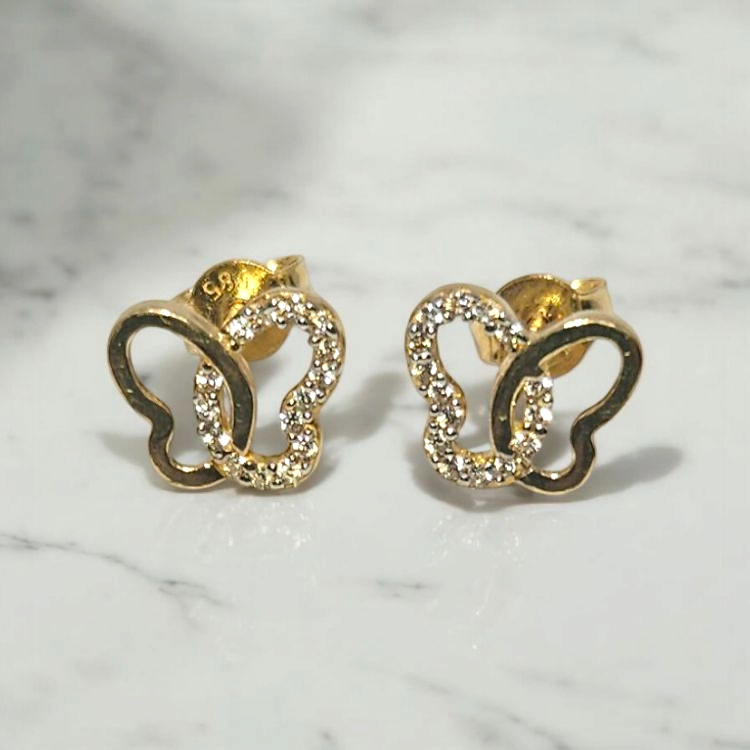 Kolczyki złote – motyl cyrkonia – złoto próba 585.