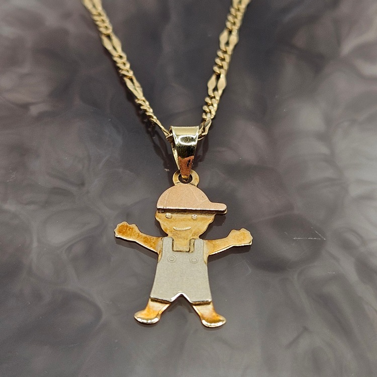 Komplet złoty – zawieszka chłopczyk + łańcuszek – złoto próba 585.