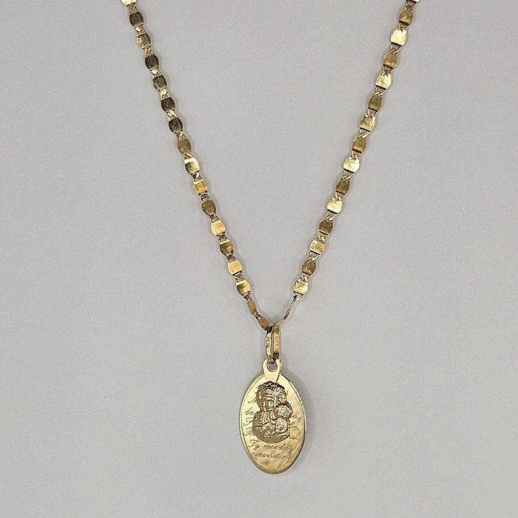 Złoty łańcuszek o splocie blaszki na zapięcie typu federing.