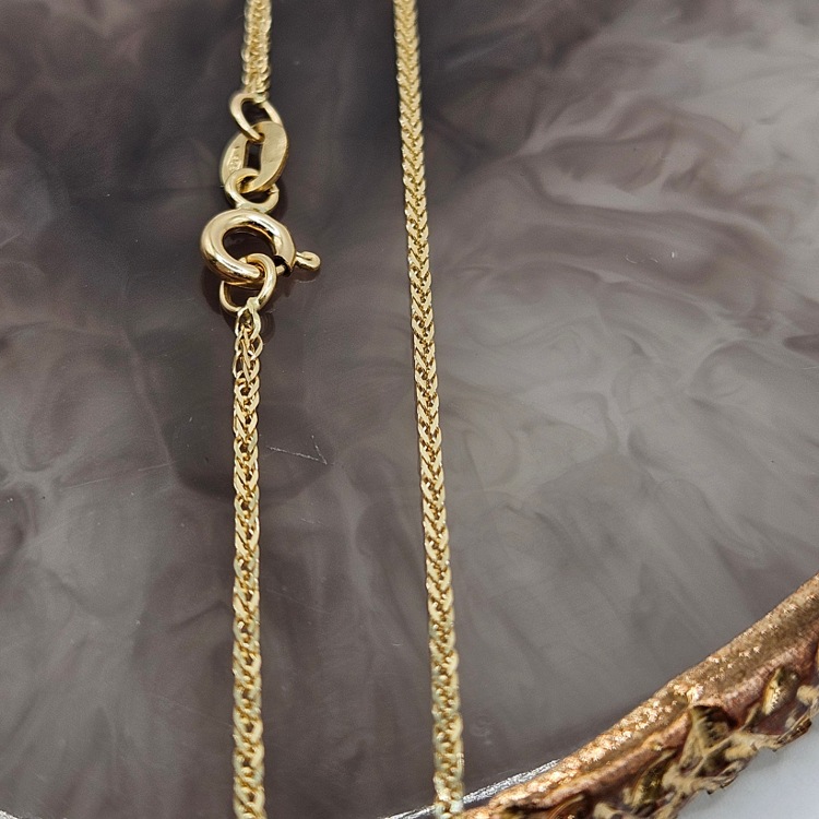 Złoty łańcuszek o splocie lisi ogon na zapięcie typu federing.