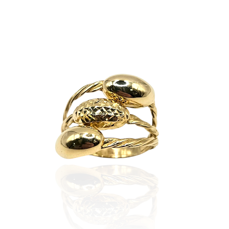 Pierścionek złoty – 3 kulki- złoto próba 585.