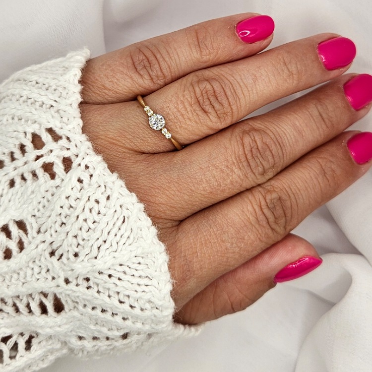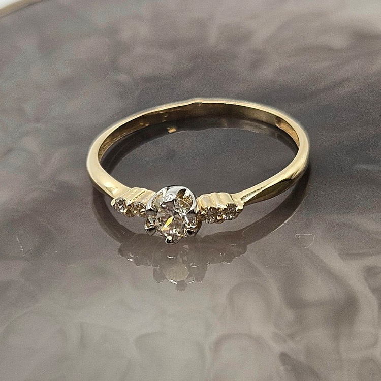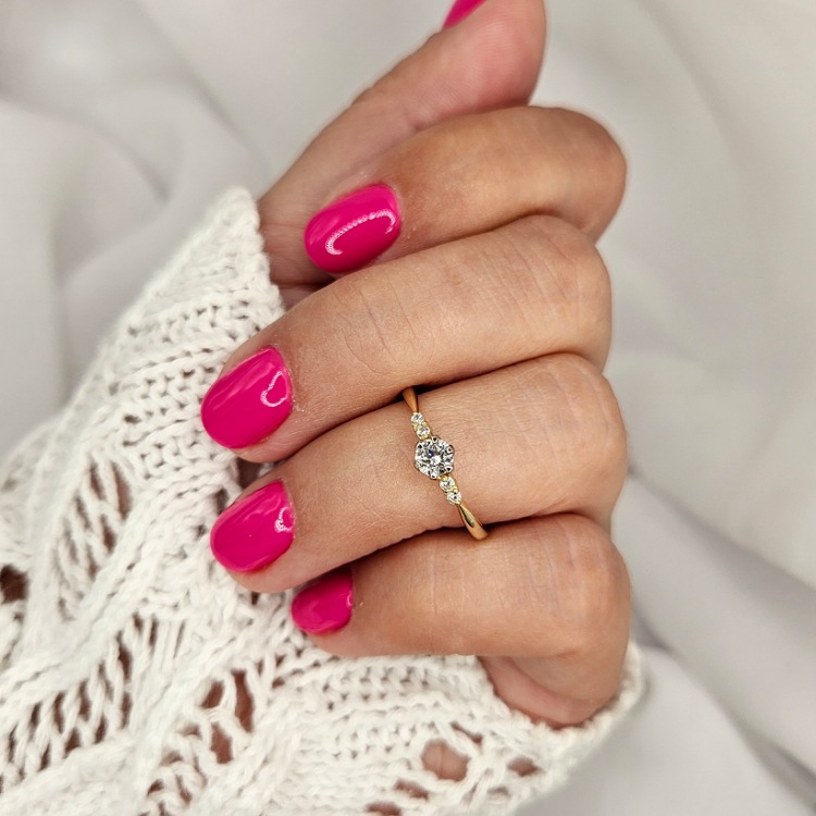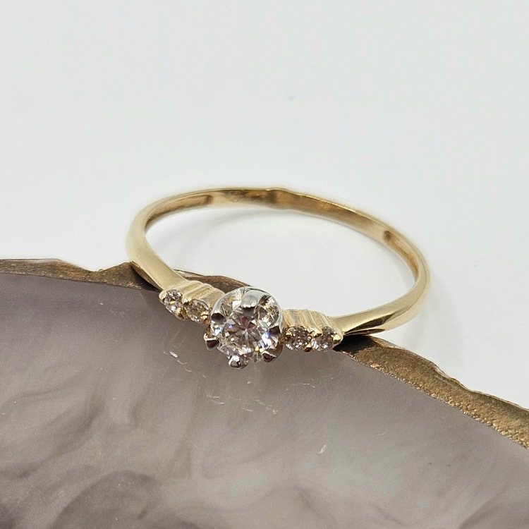 Pierścionek złoty – 5 cyrkonii – złoto próba 585.
