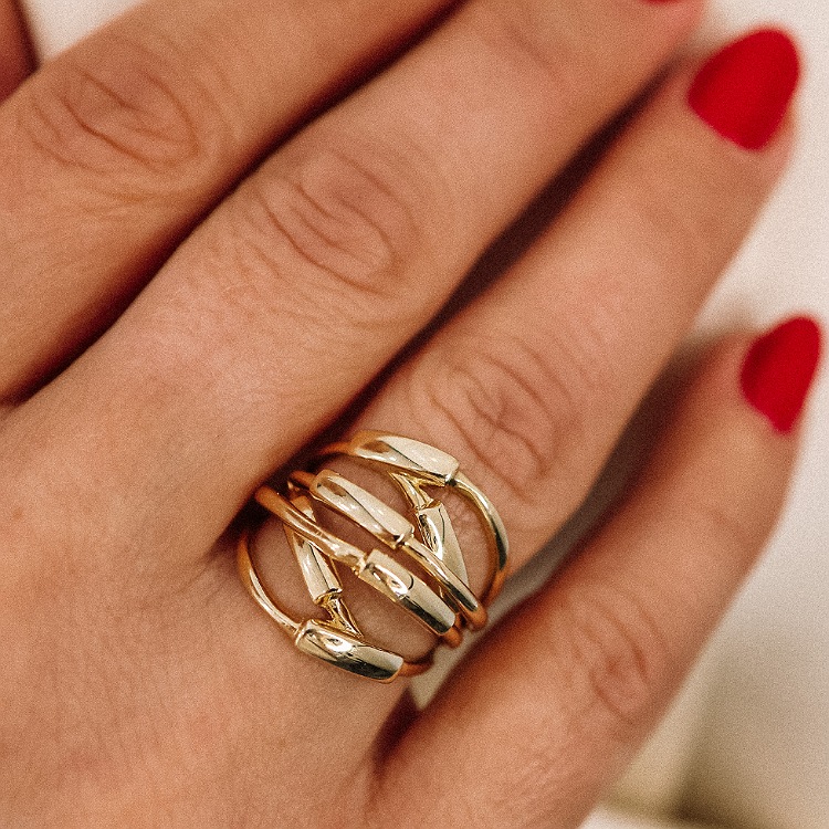 Złoty pierścionek pleciony, złoto próba 585.