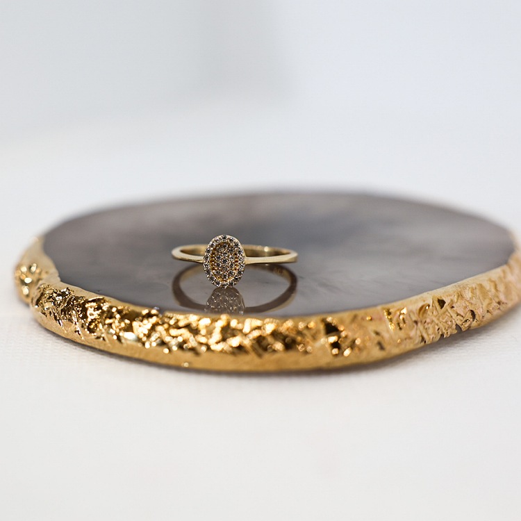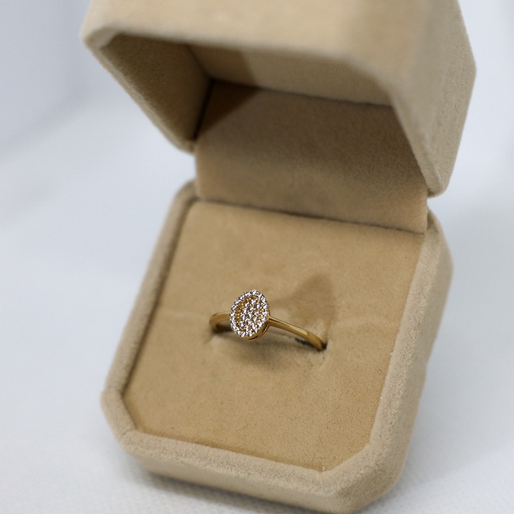 Złoty pierścionek z cyrkoniami owal.