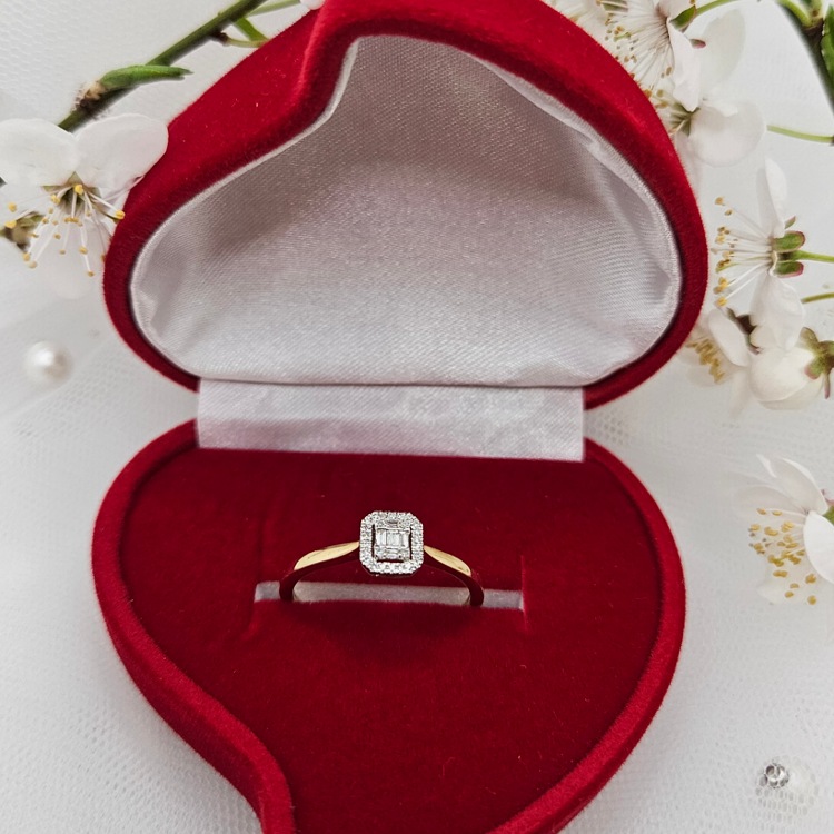 Pierścionek złoty – diament kwadrat – złoto próba 585.