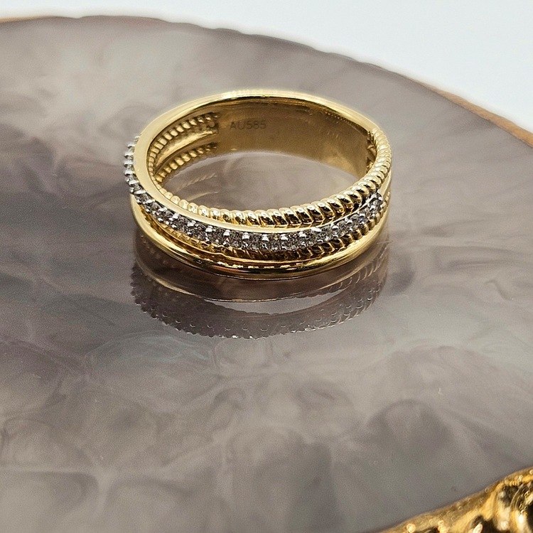 Pierścionek złoty - pleciony diamenty rozmiar 16 - Złoto próba 585