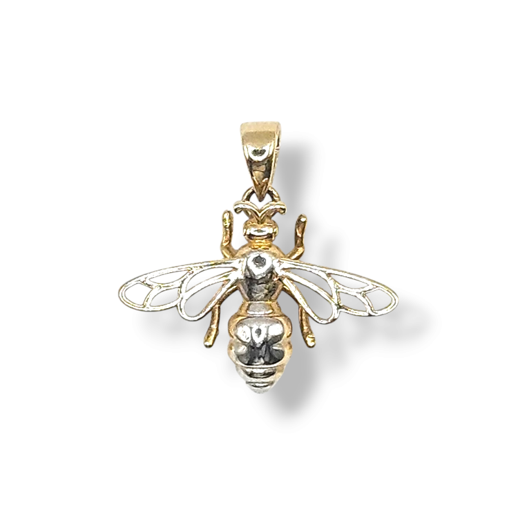 Zawieszka pszczoła z dodatkiem białego złota, złoto próba 585.