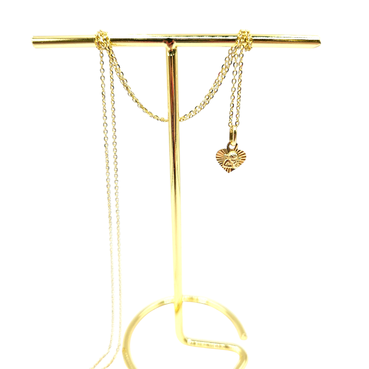 Złota zawieszka o kształcie serduszka z aniołkiem, diamentowane promyki, jednostronna.