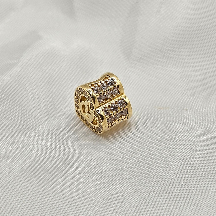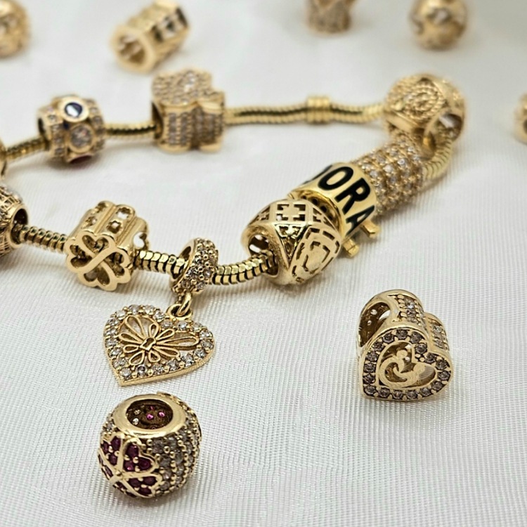 Złota zawieszka do bransoletki – Charms – serce z postaciami z cyrkoniami.
