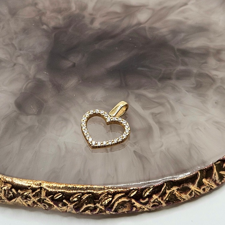 Złota zawieszka serce z dodatkiem drobnych białych cyrkonii.